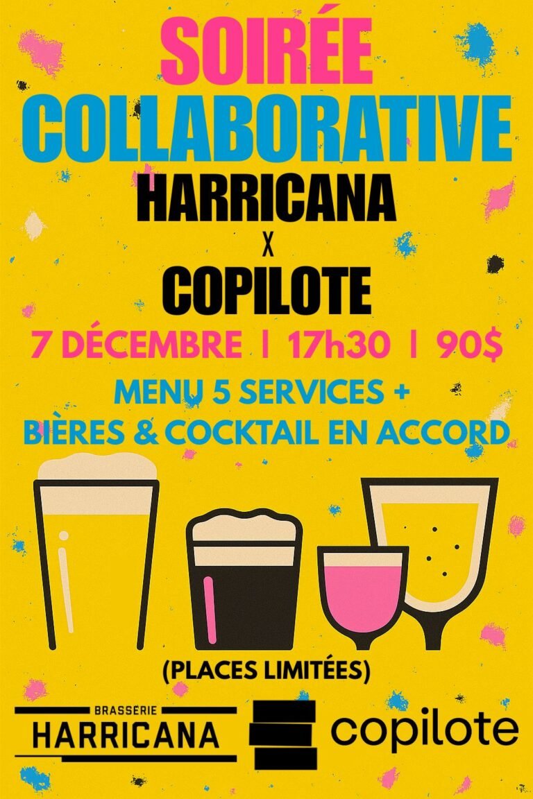 une rencontre gourmande où les bières de la brasserie harricana inspirent la cuisine et les cocktails du copilote.